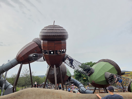 Pod Playground is a beautifully designed and engaging space for children, offering a unique and whimsical play experience. Its enclosed area provides a safe environment for kids to explore and play, with ample seating for parents. The playground’s artistic elements and integration with the natural surroundings, offering stunning views, make it a delightful destination for families.