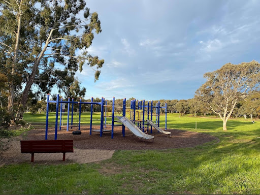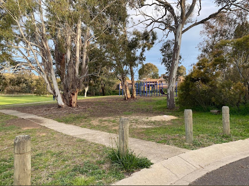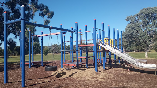 Belconnen Oval Playground is a pleasant local park suitable for families. It features two distinct play structures, offering a flying fox, a tire swing, monkey bars, and slides, providing varied play opportunities for children. The playground is complemented by a large, open oval, ideal for kids to run around or for dog owners to exercise their pets.