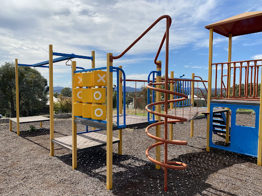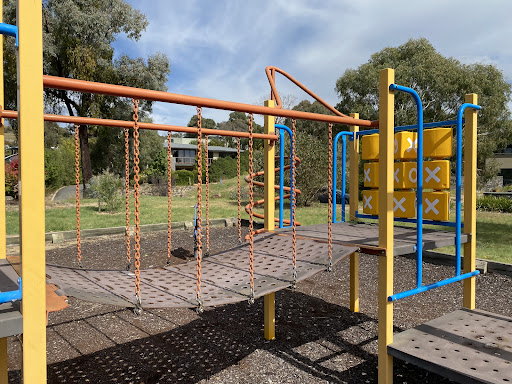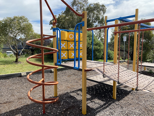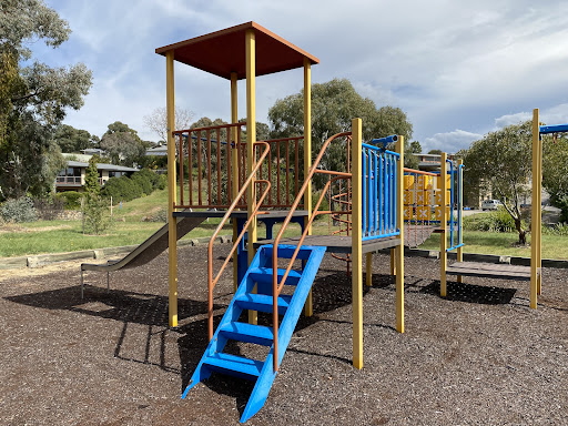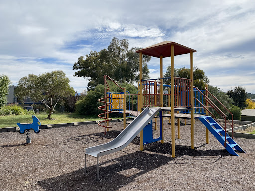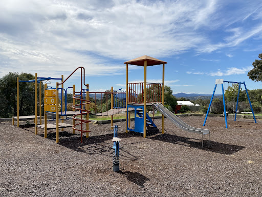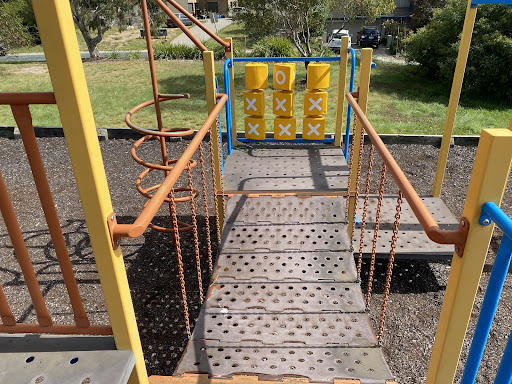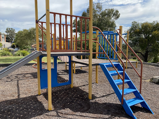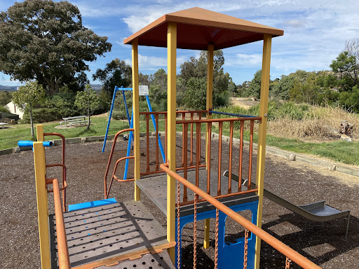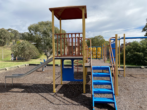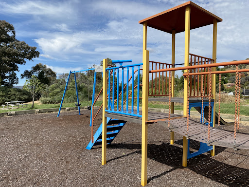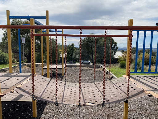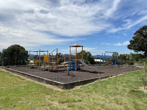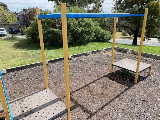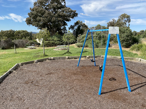 Chauvel Circuit Playground provides a simple yet enjoyable play experience with a swing set and a play structure equipped with a mini flying fox, stairs, a spiral climbing pole, and a telescope. Visitors can relax on benches under the shade of trees or use the picnic table. The playground offers a great view from its location.