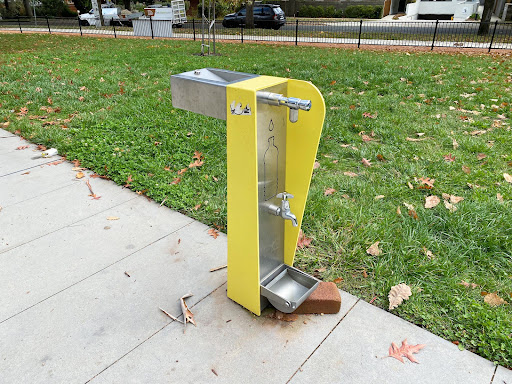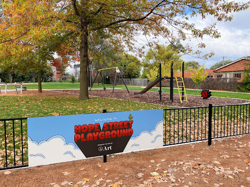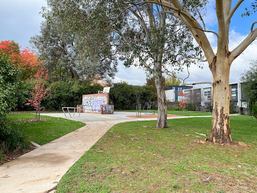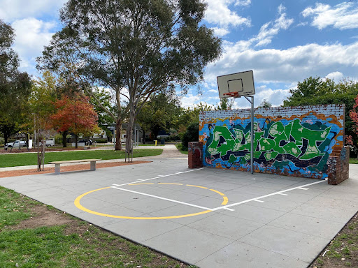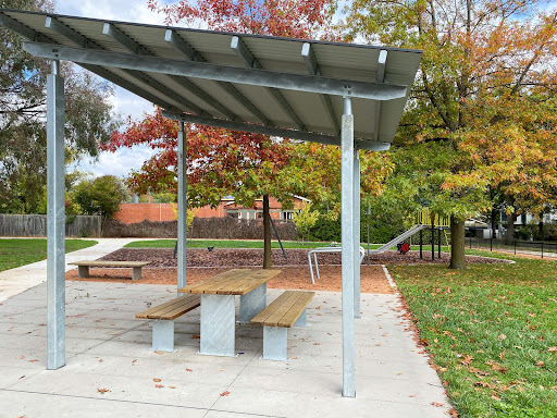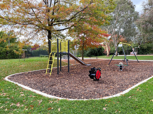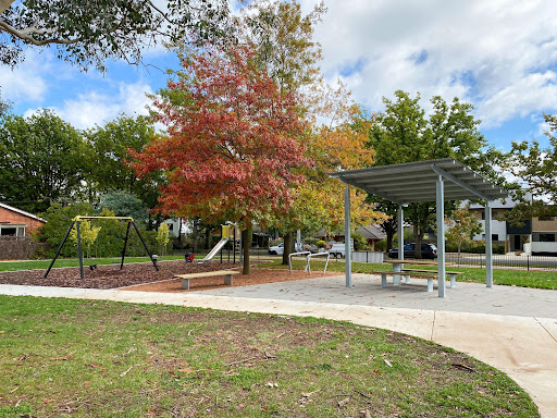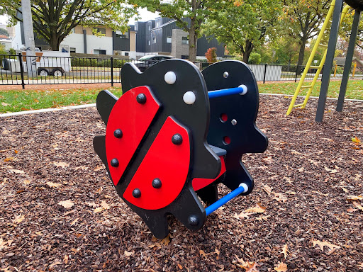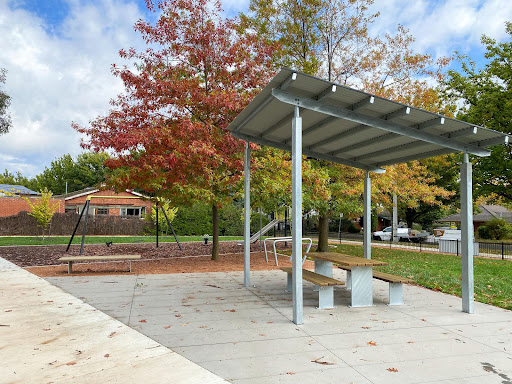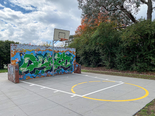 This recently upgraded neighborhood playground is a pleasant, quiet spot perfect for young children’s playtime. It features refurbished swings and slides, two new spring toys, and a partial fence for added safety. The park also includes a picnic area with a table and bins, a water bubbler, a loop footpath ideal for little bikes, and a basketball practice hoop.