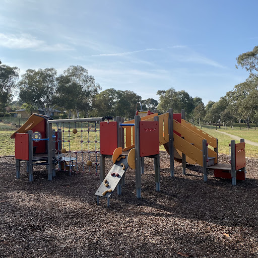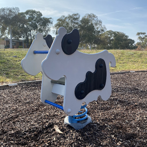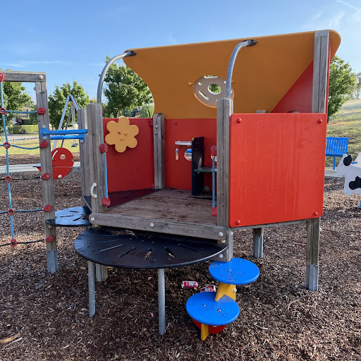 This lovely neighborhood playground is a perfect destination for toddlers and younger children, offering a safe and engaging environment. It features a delightful cubby house, a variety of springy toys, a seesaw, and swings that even adults can enjoy. The playground is surrounded by beautiful natural scenery and large trees that provide ample shade.