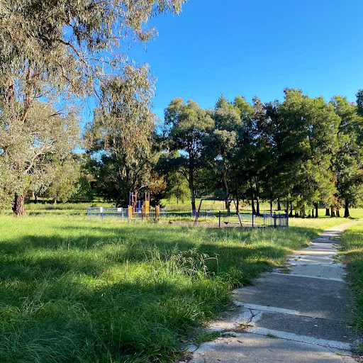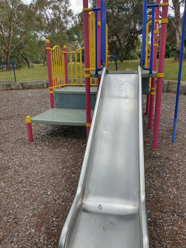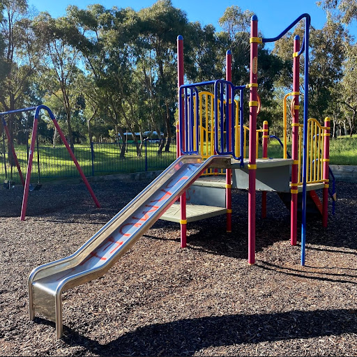 Cosygrove Playground is a clean and quiet park perfect for toddlers, situated in a lovely spot near a creek. It features a kangaroo springer, a swing set with a toddler bucket seat, and a play structure with platforms, small stairs, and a metal slide. The park is far enough from the main road to be safe for children, and the walking paths near the old river provide a pleasant environment.