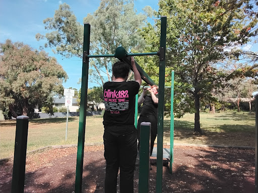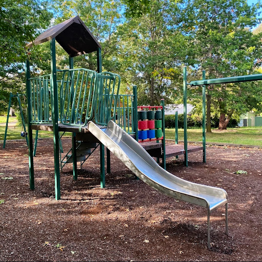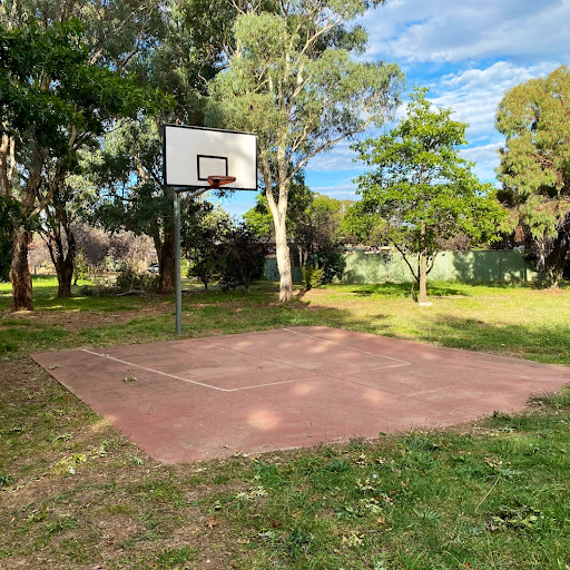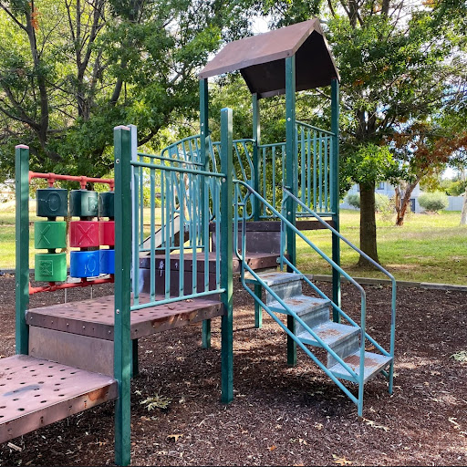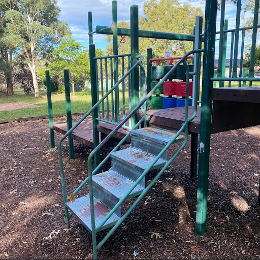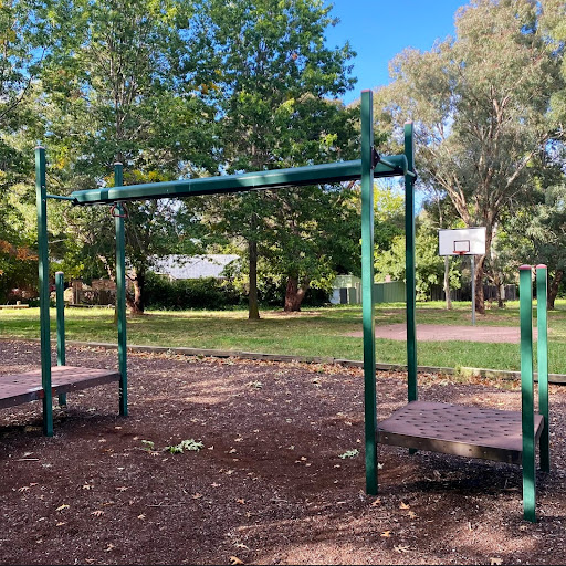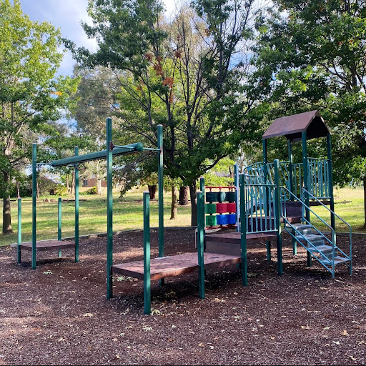 Kingston Street Playground in Evatt is an older style playground that offers a unique flying fox feature, allowing children to glide with momentum. It also includes a basketball half court for active play. The playground has a swing set and a play structure with stairs, a metal slide, and noughts and crosses. Tree shade and a bench seat are available for relaxation.