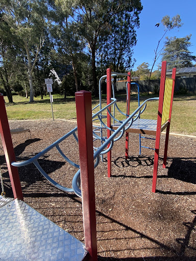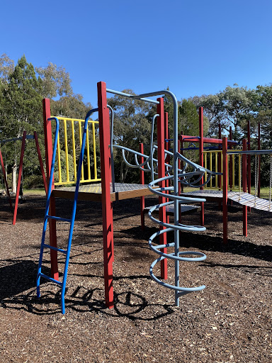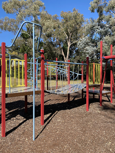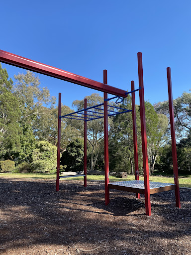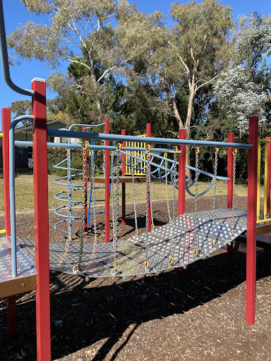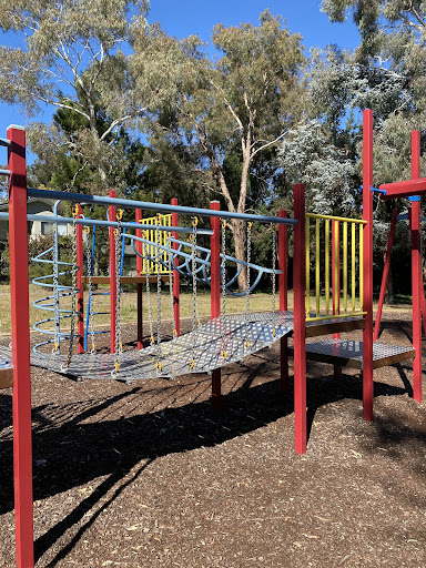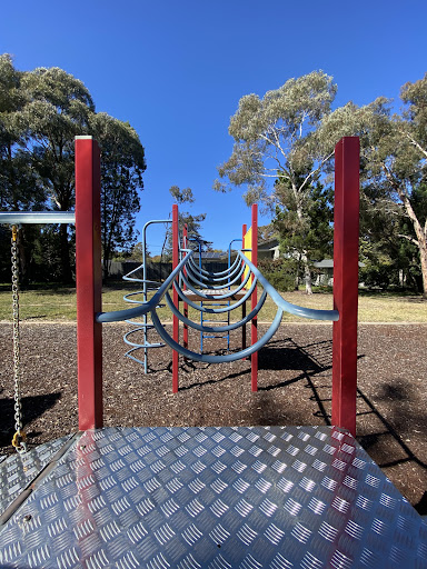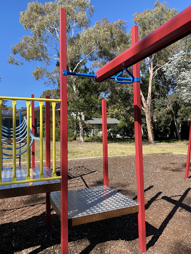 Farrer Neighbourhood Playground is a fantastic example of a revitalized local play space, especially recommended for toddlers. It features a diverse play structure with challenging monkey bars, a mini flying fox, and a unique spiral climbing pole. The playground also includes a train spring seesaw and a variety of swings, complemented by natural play elements like logs and rocks. Families will appreciate the shaded bench seating and the quiet, suburban setting.