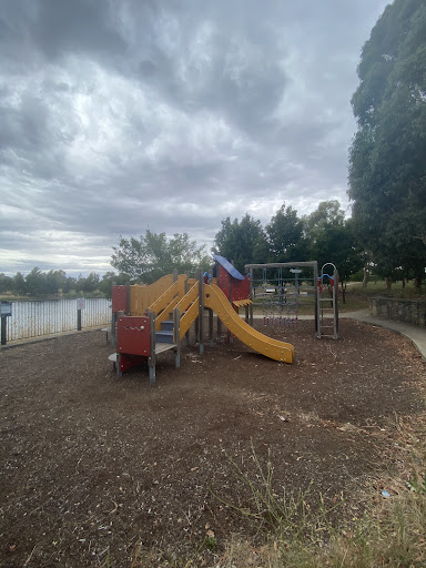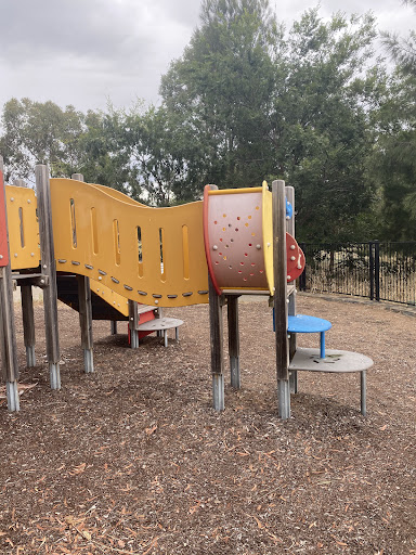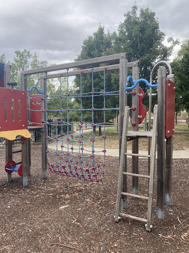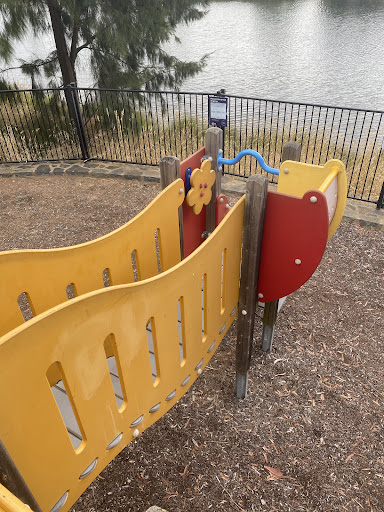 This beloved playground offers a variety of play equipment, including a main play structure with a slide and rope obstacles, a rope climbing structure, and unique spinning elements like the “Supernova.” It is safely fenced on the water side with a viewing platform, and there are sheltered picnic tables and a grassy picnic area. The playground is surrounded by beautiful environments perfect for walks with children and pets, and benefits from natural tree shade.