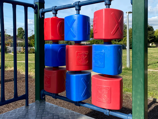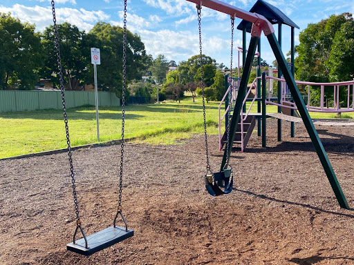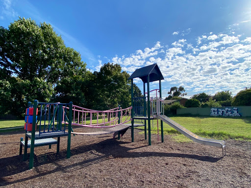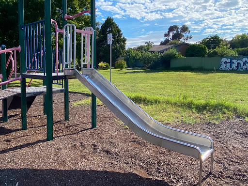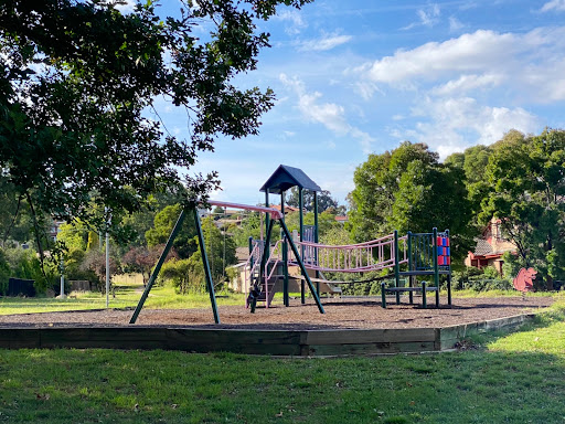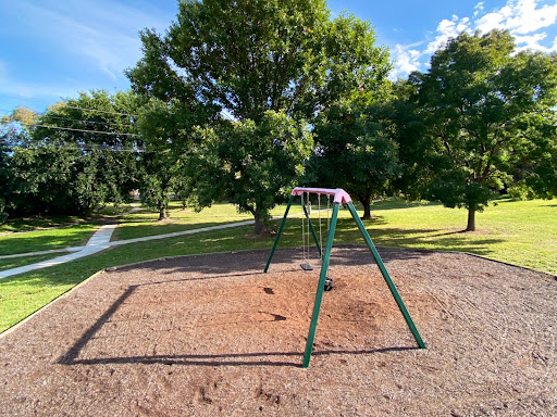 Grant’s Playground provides a fun environment with a unique platypus springer and a swing set. The play structure includes a slide and a sliding pole, offering varied climbing and sliding experiences. The presence of tree shade adds to the comfort of this playground.