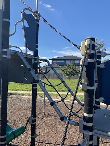 Koonalda Street Playground offers a challenging climbing experience, particularly for older children, featuring a large play structure with various climbing options including rope ladders and a curved slide. It also includes swings with both toddler and standard seats, seesaws, and a turntable pole for spinning fun. While the park is noted for its challenging equipment, its size and limited facilities might be considerations for some families.