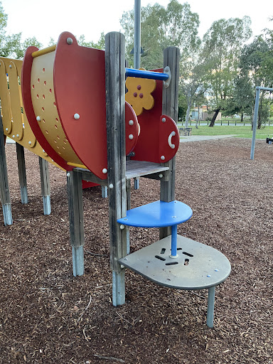 Mullion Park Playground offers a diverse play experience with equipment catering to various age groups, including a large play structure, monkey bars, and a seesaw. The park is enhanced by artistic elements and informational plaques scattered throughout, creating an engaging environment. Families can also utilize the BBQ facilities and enjoy the ample open space and shaded benches, making it a lovely spot for a relaxed outing.
