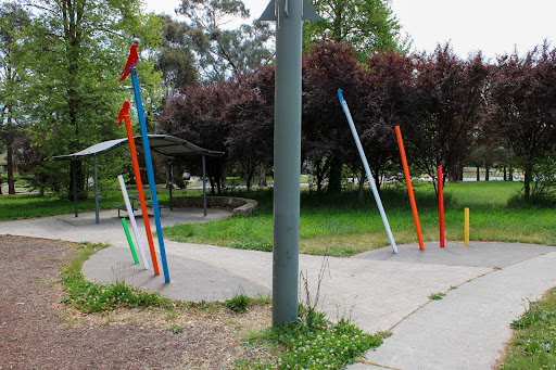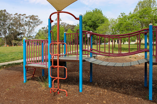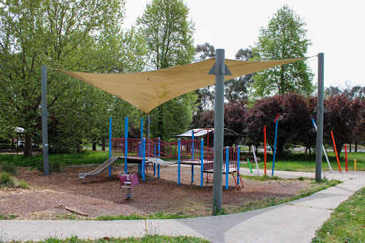 This playground offers a pleasant experience for families, featuring a shade sail for sun protection and sheltered picnic tables ideal for gatherings. The nearby oval and walking path provide space for active play, and artistic elements like bird sculptures add a unique touch. It’s a good spot for a quiet outing with young children.