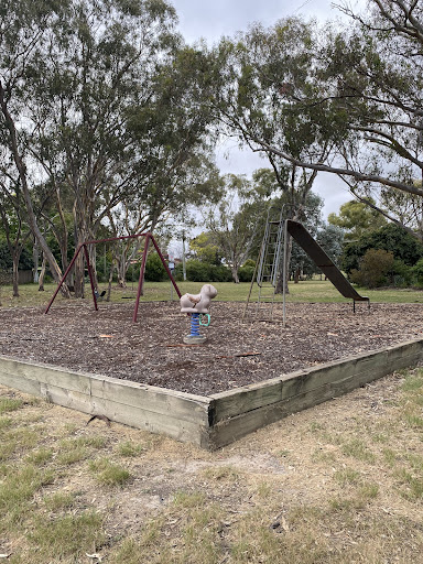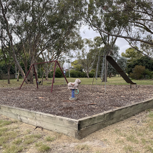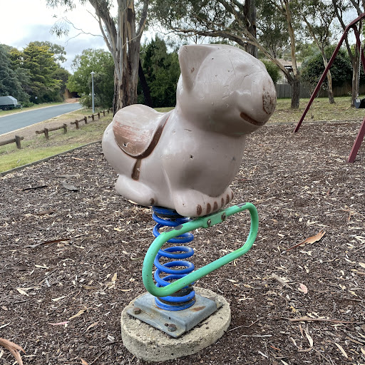 Rounsevell Playground is a charming spot surrounded by lovely big trees that offer ample shade. The playground features a swing set with two standard seats and a stand-alone metal slide that is described as unusually tall and exciting. It also includes an animal spring hopper, making it a fun destination for children to enjoy the outdoors.