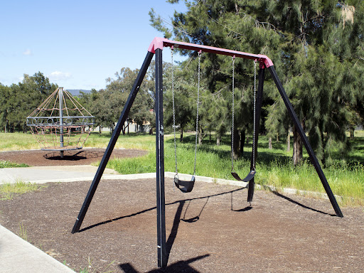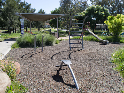 This playground is equipped with convenient parking and picnic facilities, including a BBQ area. It also features adult exercise equipment for a well-rounded outdoor experience.