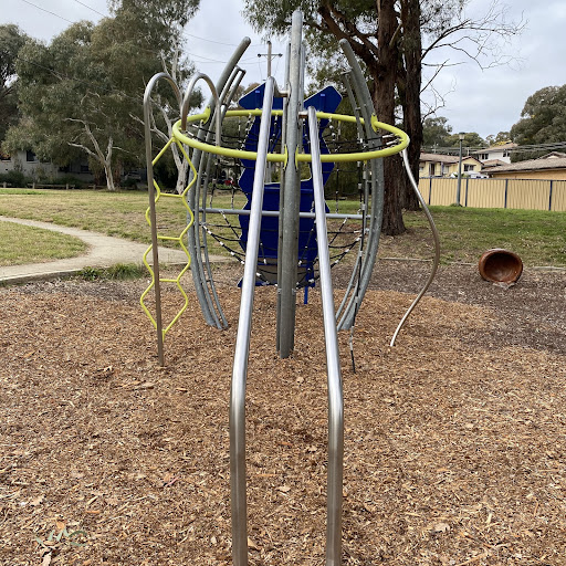 Families will appreciate the artistic flair of this playground, featuring charming gumnut and echidna sculptures alongside a variety of engaging climbing structures. The play area offers swings and challenging elements like rope walls and unique sliding poles. Its location next to Ginninderra Creek provides a scenic backdrop, complemented by a picnic area and nearby dirt bike trails.