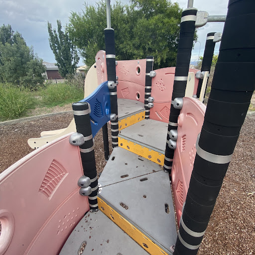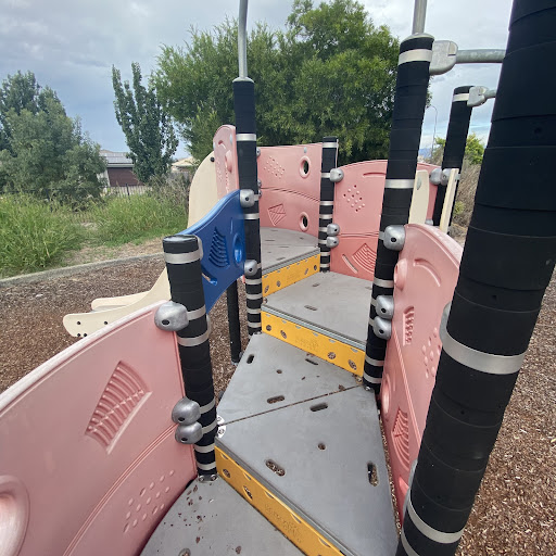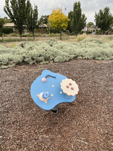 Jean Macnamara Street Playground is a delightful spot primarily designed for toddlers and small children. It features a swing set with both standard and toddler seats, a small play table with interactive elements like a megaphone and moveable handle, and a plastic play structure with a slide, mini ladder, and musical elements. The playground is partially fenced, providing a safe environment for little ones, and offers a few bench seats for parents.