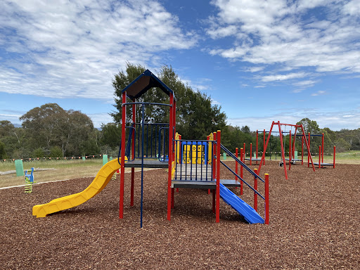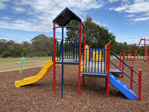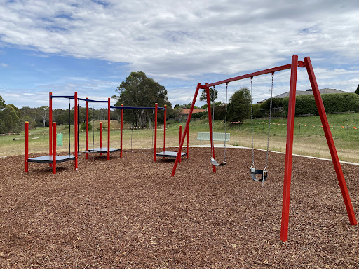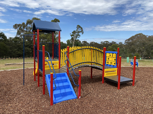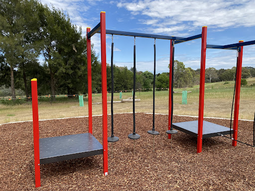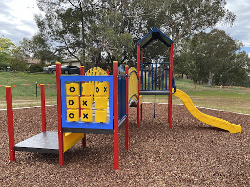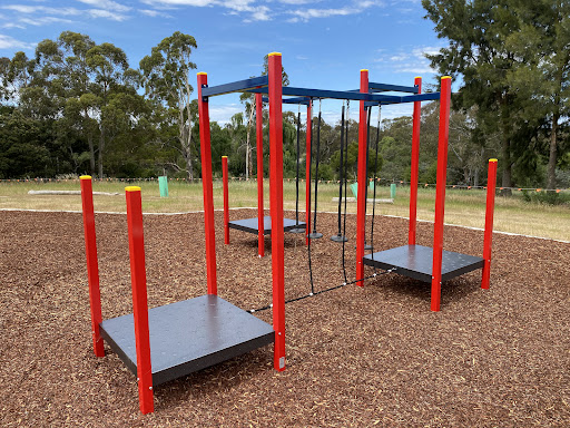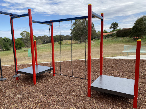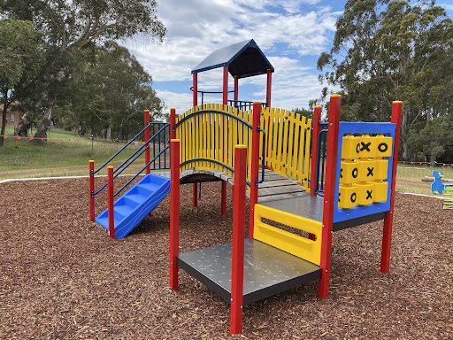 This recently upgraded playground features brand new and modern equipment, offering a refreshed play experience for children. It includes a swing set with both standard and toddler seats, and an obstacle play structure with a rope tightrope crossing and poles with foot platforms. Families will enjoy the play structure which boasts stairs, a platform, a noughts and crosses game, a solid curved bridge, and a fun plastic slide.