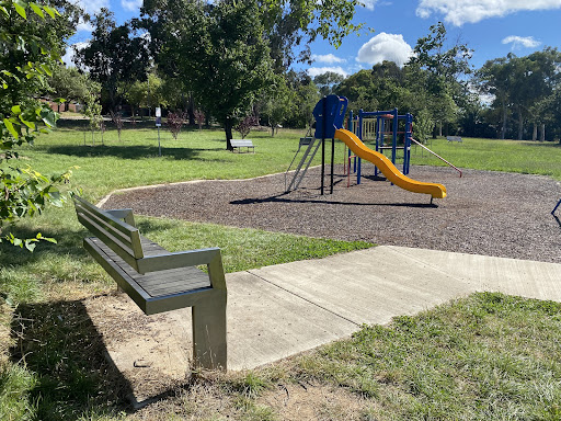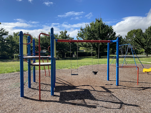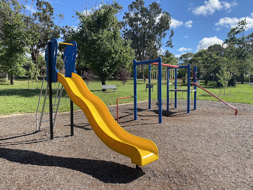 Throsby Park playground has been recently upgraded, offering a mix of new and repaired equipment for children to enjoy. Highlights include a wavy stand-alone slide with a step ladder, a spin bar, and a play structure featuring a toddler half-bucket swing seat and standard swings. The playground also includes a speed slide with diagonal sliding poles, adding an element of excitement.