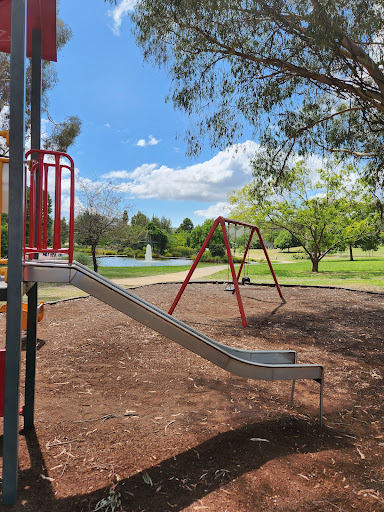 This playground, while older, offers a range of play equipment including swings, monkey bars, and a spring kangaroo seesaw that cater to both toddlers and older children. It’s located in Eddison Park, near picnic areas with BBQs and offers scenic views. Families can enjoy the available tree shade and the convenience of nearby facilities like toilets and drinking fountains.