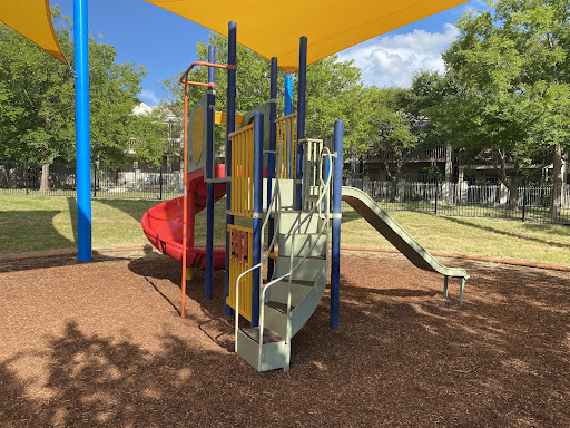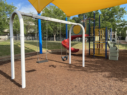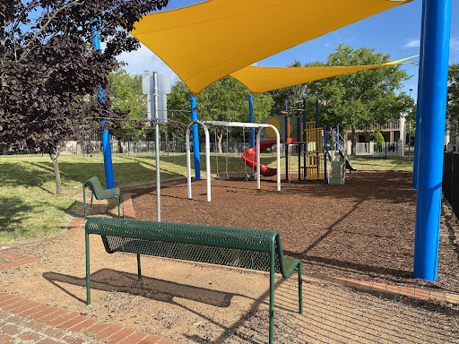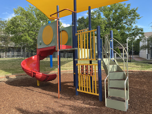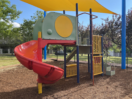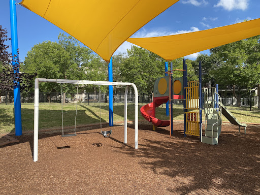 This fully fenced playground is a hidden gem, featuring a shaded picnic area with tables and a play structure that includes two fun slides and a metal slide. It’s an older style playground that is definitely more suited for bigger kids, offering a good space for adventurous play. Street parking is available nearby.