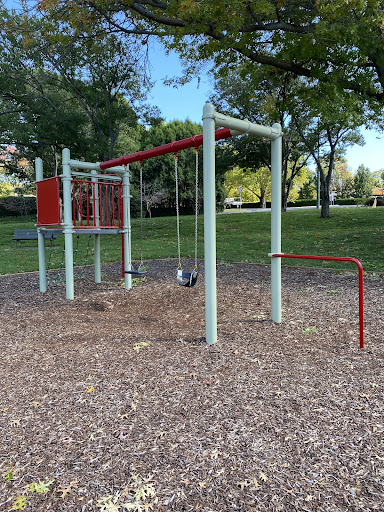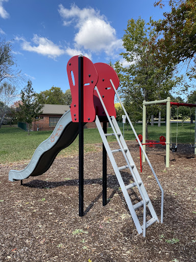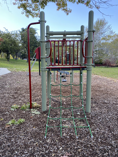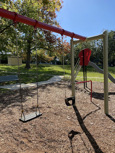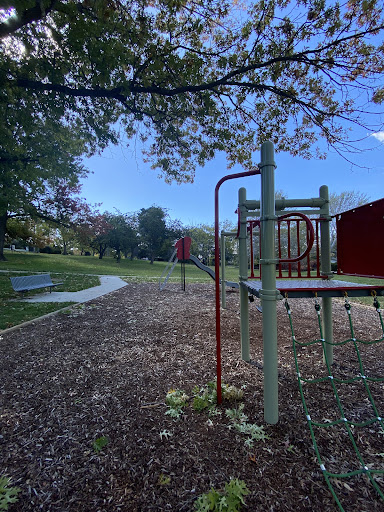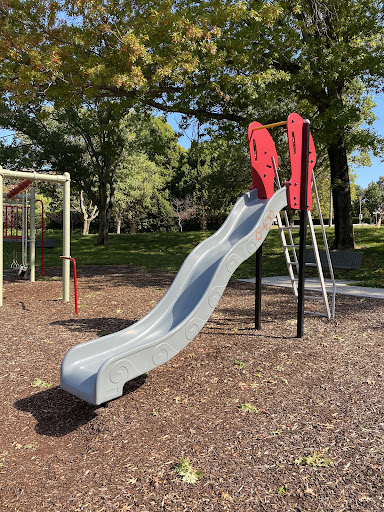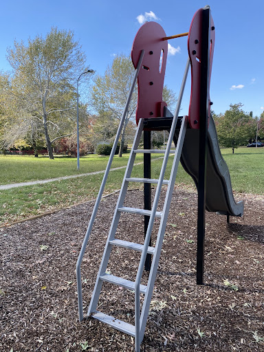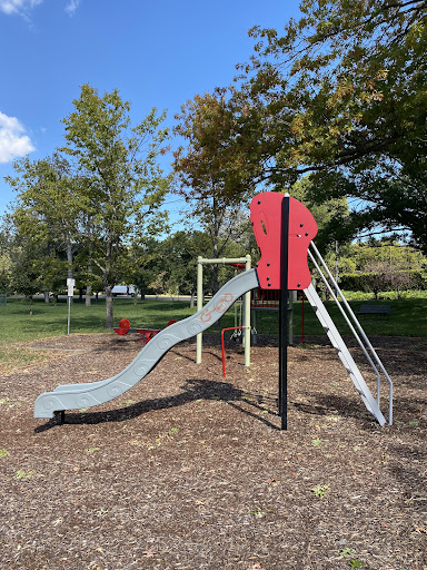 This charming local playground features recently upgraded paint and flooring, creating a fresh and safe play space. It includes a stand-alone slide with steps and railings, a seesaw beam, and a play structure with a rope ladder, sliding pole, and swings. Families can enjoy the shaded bench seats, making it a pleasant spot for younger children.