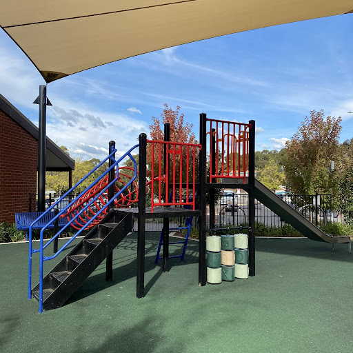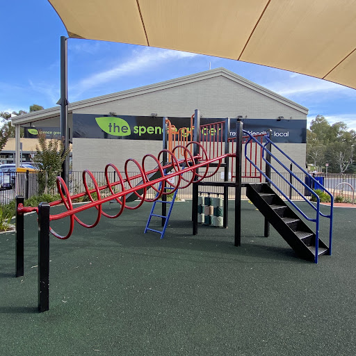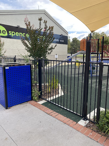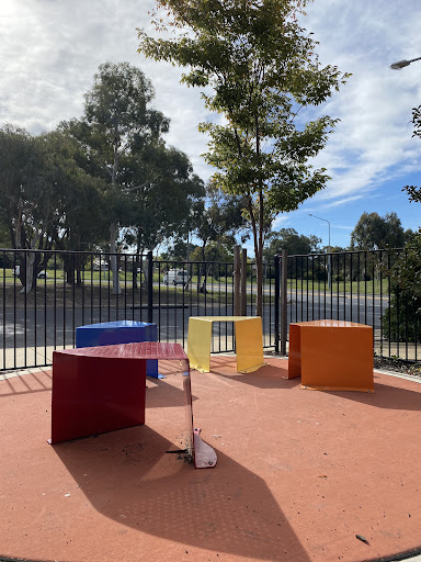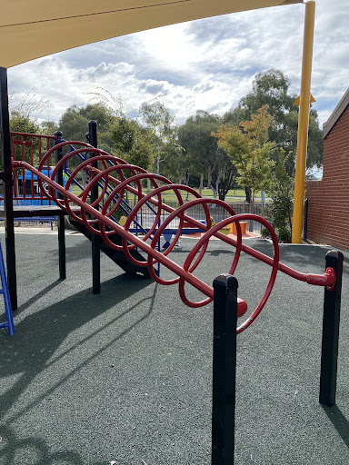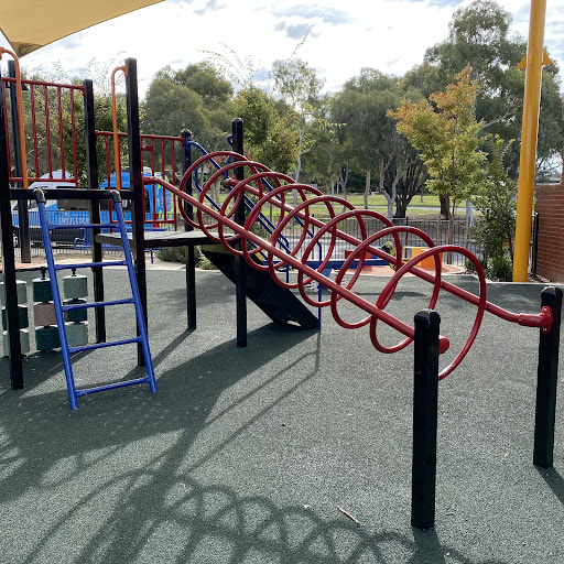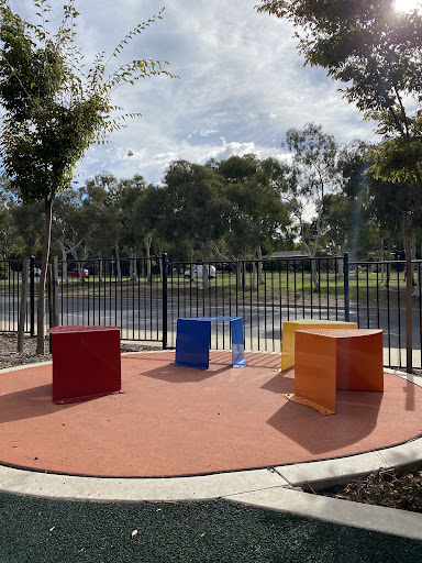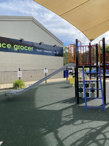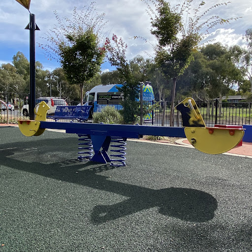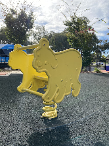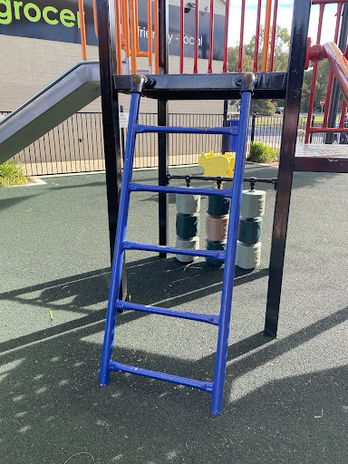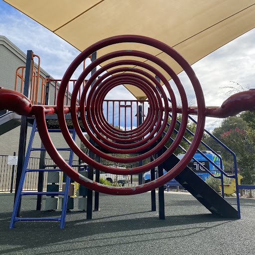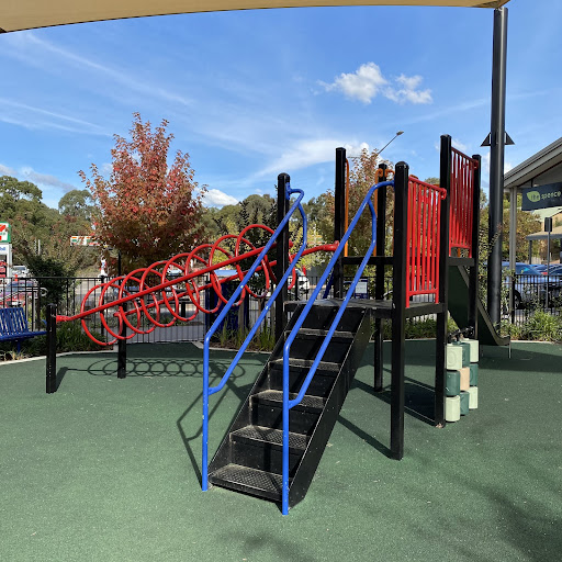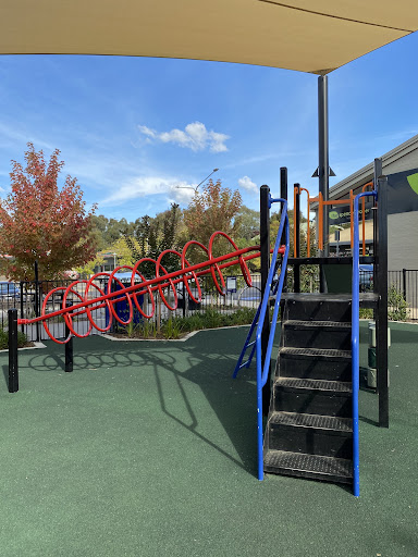 This fully enclosed playground is a standout with its large overhead shade sail, offering excellent weather resistance for year-round enjoyment. Designed with toddlers in mind, it features a soft, spongey synthetic fall surface that adds to the play experience. The playground includes two safety gates for secure entry, a bubbler for water bottle refills, and a small picnic area with seating just outside the fence. Its convenient location near local shops and cafes makes it a perfect spot for a relaxing playdate.