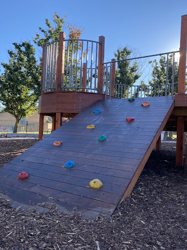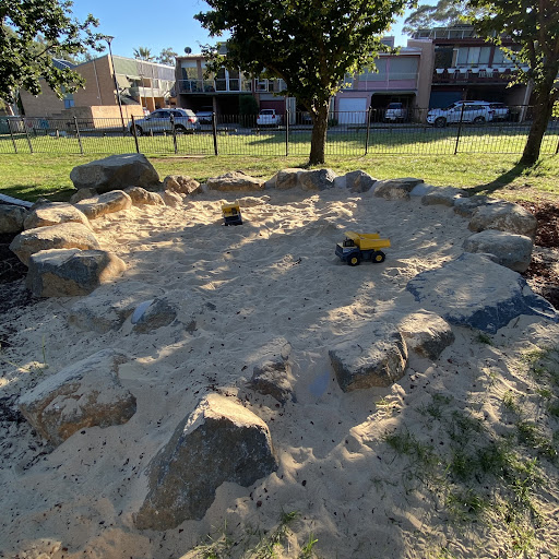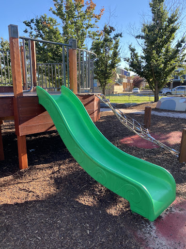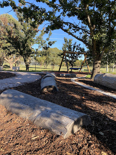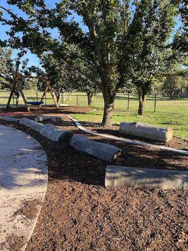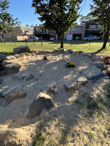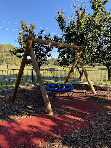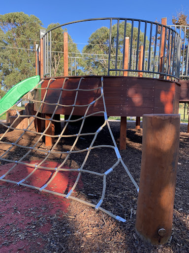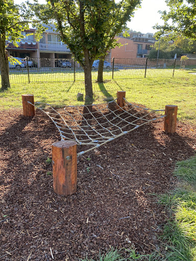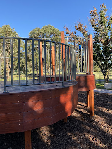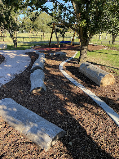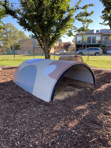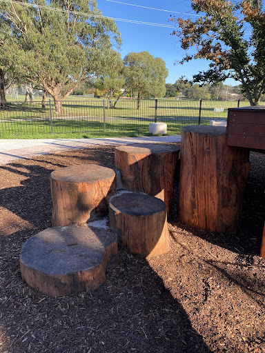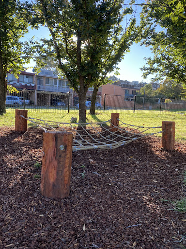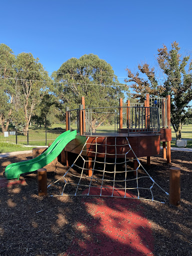 Waramanga Nature Playground is a secure and engaging space designed with nature play elements, featuring a fantastic sandpit, stepping logs, and a climbing structure with a slide and viewing platform. The playground is fully fenced, providing a safe environment for children, and offers tree shade and sheltered seating. Its natural elements and equipment make it a lovely play space for young children.