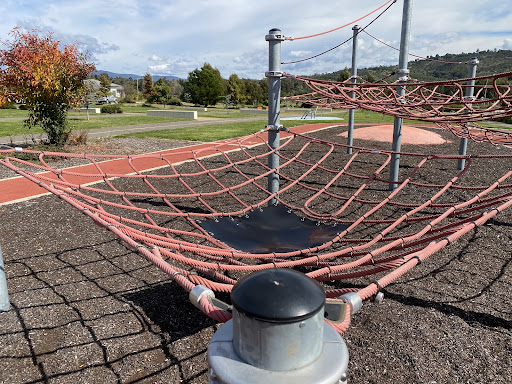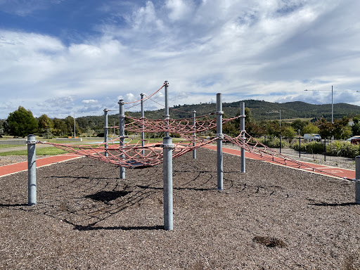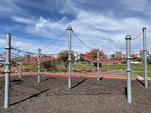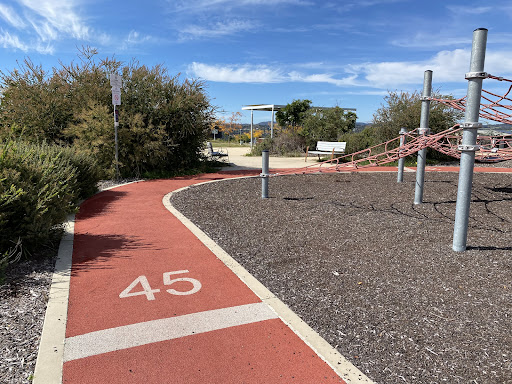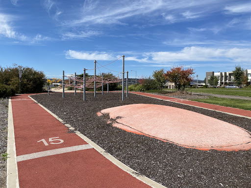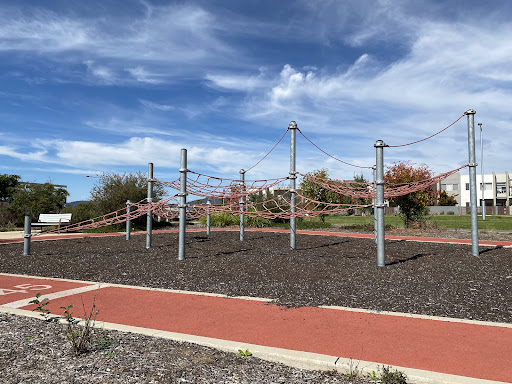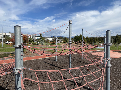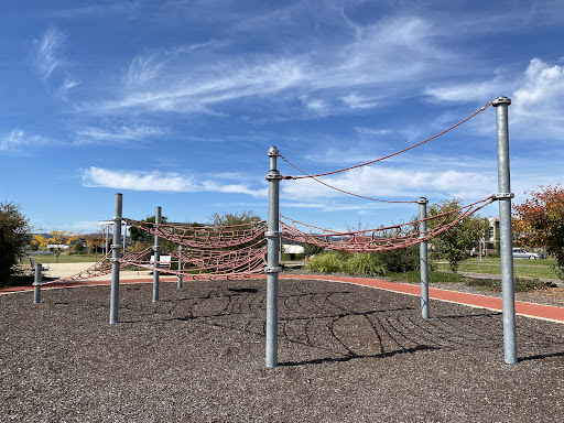 Argus Park offers a unique play experience with its challenging rope obstacle towers, including a plastic hammock level, and a fun rubber play hill. The park also features a 100m running track that can be used for racing or as a bike/scooter path, providing active fun for children. Families will appreciate the nearby picnic area and the convenience of on-site parking.
