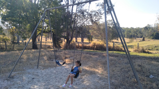 This playground features a swing and is located in Greenhill. It is noted that the area could benefit from better upkeep and clearing.