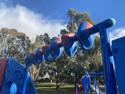 Coachwood Playground is a highly entertaining spot that benefits from abundant shade provided by large trees, making it perfect for sunny days. The playground features an impressive climbing obstacle course with monkey bars, dual flying fox obstacles for racing friends, and a slide. It also includes a swing set with both toddler and standard seats. Families can enjoy the multiple sheltered picnic areas, creating a wonderful environment for a day out.