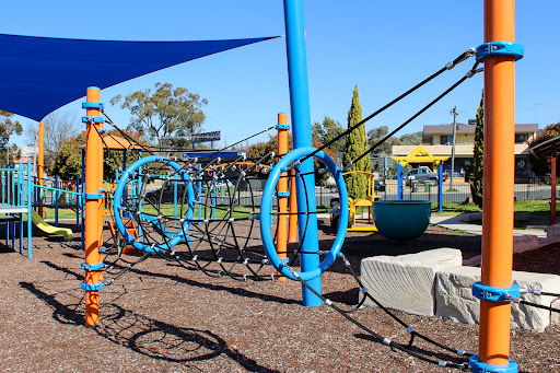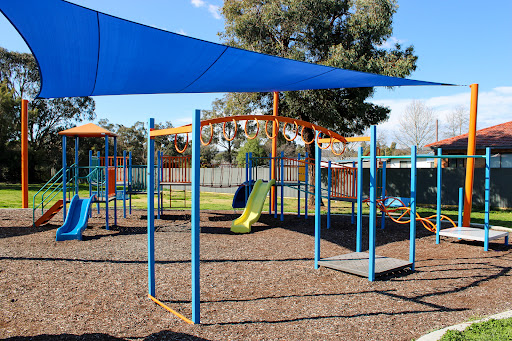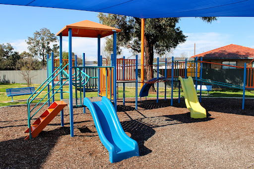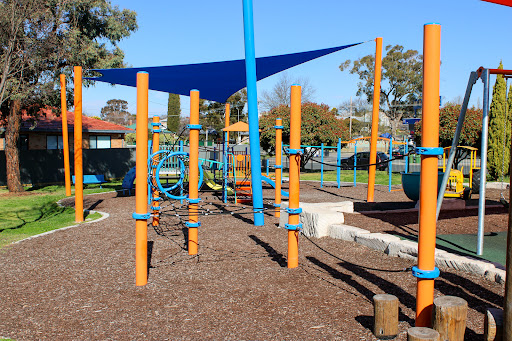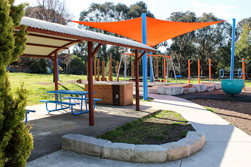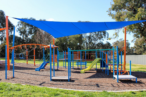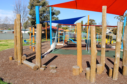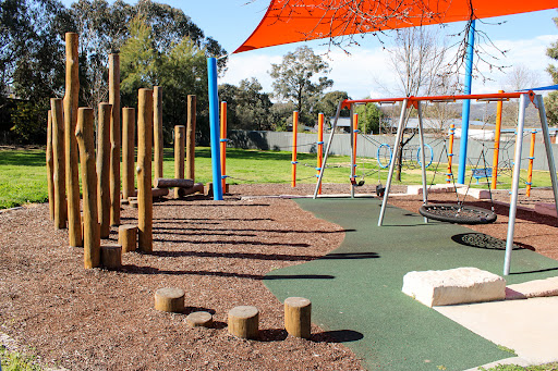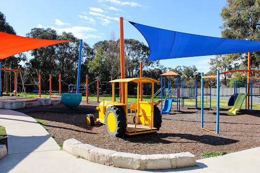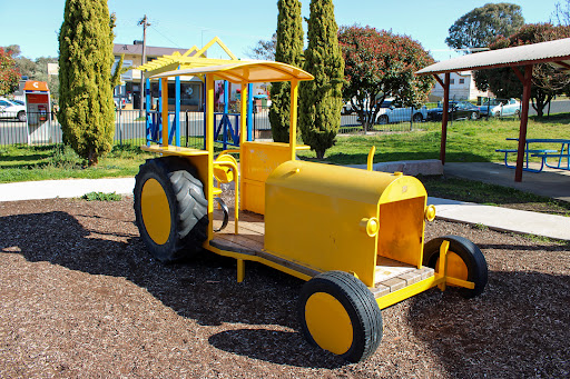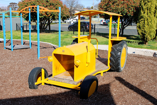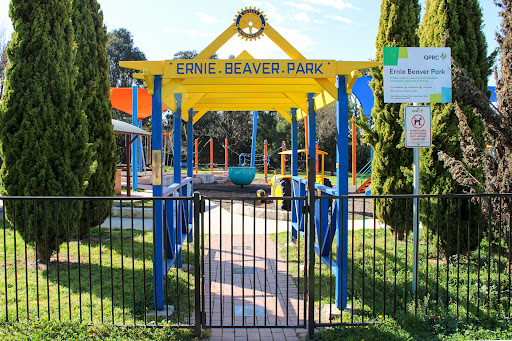 Ernie Beaver Park is a charming, fully fenced playground offering a spacious environment with plentiful shade and a good selection of play equipment suitable for various ages. Highlights include a play tractor, a comprehensive rope obstacle course, slides, swings, and natural elements like limestone rocks and wooden beams. The park also provides picnic tables and BBQ facilities, making it an excellent choice for a relaxed family outing.