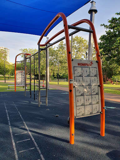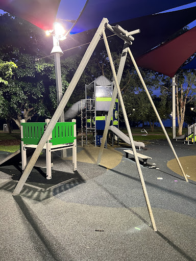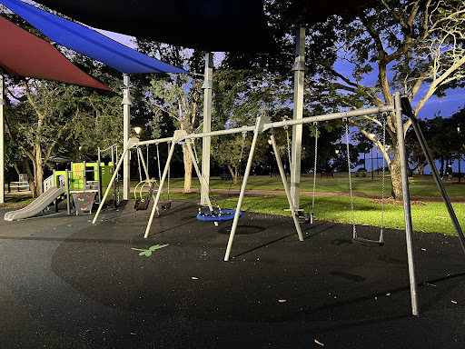 Bicentennial Park Play Space is a comprehensive and family-friendly destination, offering a variety of play equipment suitable for all ages, from toddlers to teens. Highlights include a large slide with a unique climbing option and engaging water play features. The park is well-equipped with picnic tables, shade, restrooms, and a nearby exercise area for adults, making it a perfect spot for a day out.