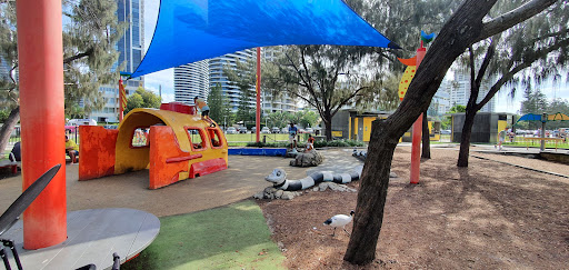 Kids Playground Kurrawa is an exceptional destination for children and families, boasting a large, fenced play area with diverse activities that cater to a range of ages. Highlights include a unique monorail that kids can pedal, exciting slides, engaging climbing structures, and a castle play element. The playground’s proximity to the beautiful beach offers opportunities for swimming, and nearby cafes and picnic areas provide convenient options for refreshments.