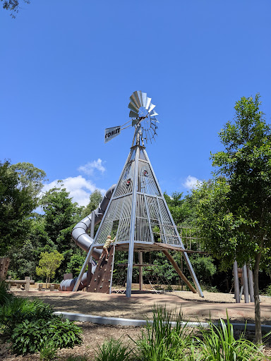 Country Paradise Parklands offers a fantastic adventure and nature-play experience for families with children of all ages, from toddlers to early teens. The park boasts exciting climbing structures and refreshing water play features, perfect for cooling off on warm days. Visitors appreciate the ample shaded seating, picnic tables, and BBQ facilities, making it an ideal location for family gatherings and celebrations. The surrounding open grass oval and nearby coffee kiosk further enhance the appeal for a delightful day out.