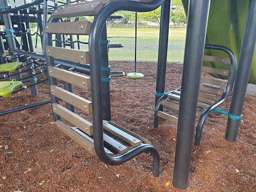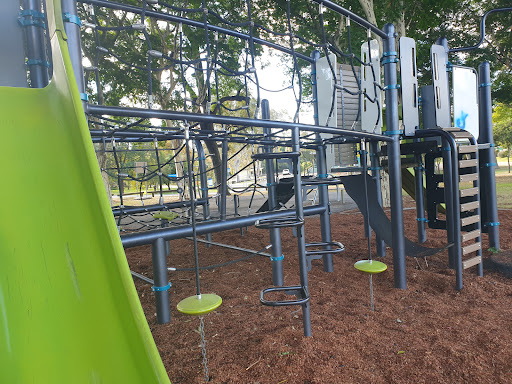 Jack Cook Memorial Park Playground is a modern facility offering an array of climbing equipment, swings, and slides that provide ample fun for school-aged children. The park is well-maintained and features a bubbler and benches, with nearby adult exercise equipment and walking/bike paths enhancing its appeal for active families.