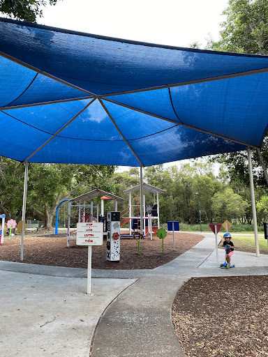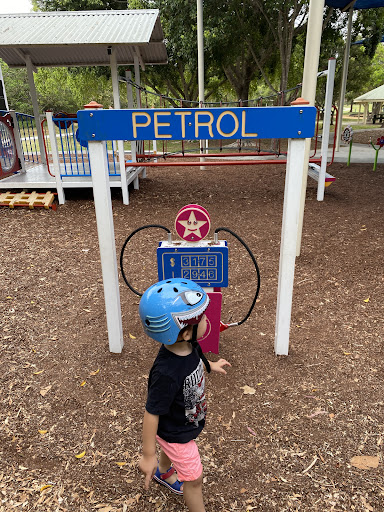 The Petrol Station themed playground offers a unique and interactive play experience for children, featuring a creative petrol station design that sparks imagination. Kids can enjoy a variety of equipment including slides, swings, climbing structures, and the popular pedal monorail, all set within a well-shaded environment. The park provides ample seating and is situated near paths suitable for scooters, making it an enjoyable outing for families with young children.