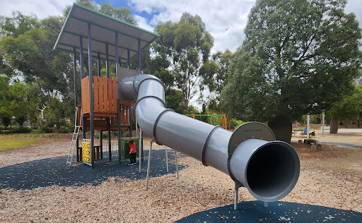 Lochiel Park Playground is a great little play space nestled within walking trails and wetlands, offering a slide, swings, climbing area, and sand pit. It’s particularly suited for slightly older children who can also enjoy the adjacent basketball half-court and soccer goals, making it a versatile spot for families with varying interests. The playground also features a shaded BBQ area with picnic tables and nearby toilets, complementing the natural play opportunities.