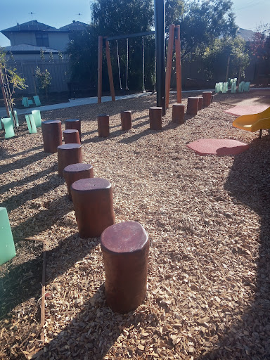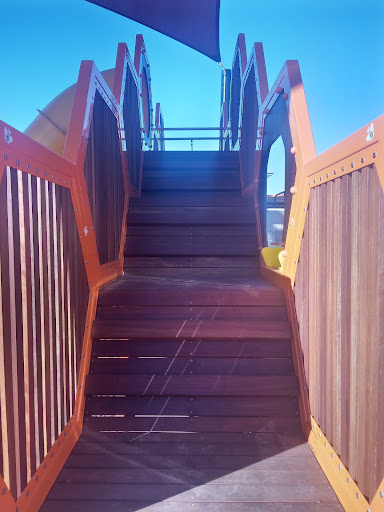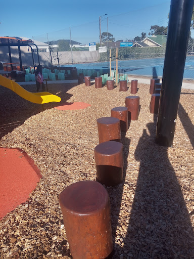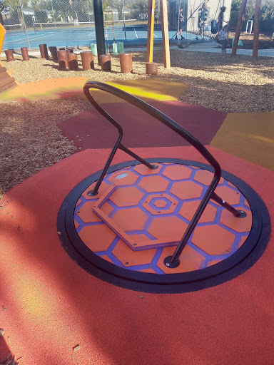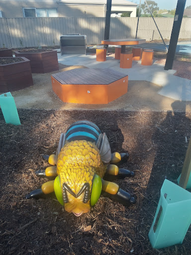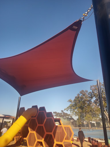 Stanley Street Reserve Playground is a beautifully themed ‘bee’ park that offers a unique and educational play experience for children. The playground features a large slide with a honeycomb design, climbing walls, monkey bars, rope ladders, and interactive bee-themed game tables and sculptures. Covered by a large shade sail and surrounded by trees, the play area provides ample protection from the sun. Nearby amenities include a new barbecue area, covered seating, and a water fountain, with additional green space and tennis courts adjacent.