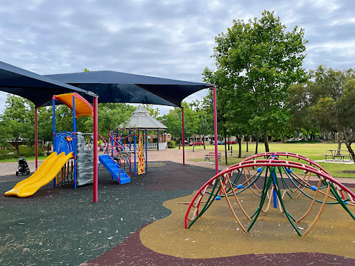 This updated playground in Mile End Common offers a great space for both children and adults, featuring a variety of play equipment and exercise facilities. Families can enjoy the shaded pavilion, making it a comfortable spot for parents to watch children play. The park also includes BBQ amenities and clean restrooms, adding to its convenience for a relaxing family outing.