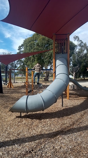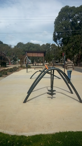 The Appleby Road Reserve playground is an awesome, fairly new facility built primarily from wood, offering a range of engaging play elements. It features an innovative built-in app that allows children to play games by scanning pictures on the play equipment. The playground includes swings, slides, a climbing area, wooden steps, and integrated water and sand play. Additional amenities such as exercise equipment for adults, quality wooden seating, a covered area, a grassy space for games, and a bike path enhance the park’s appeal, making it suitable for a variety of family activities.