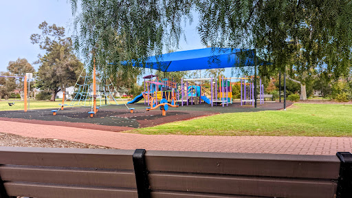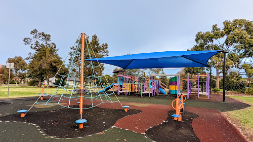 This playground offers shade through an artificial cover and provides close seating. It features good slides and swings, with plenty of climbing options to keep younger children occupied. There is also ample space to run around.