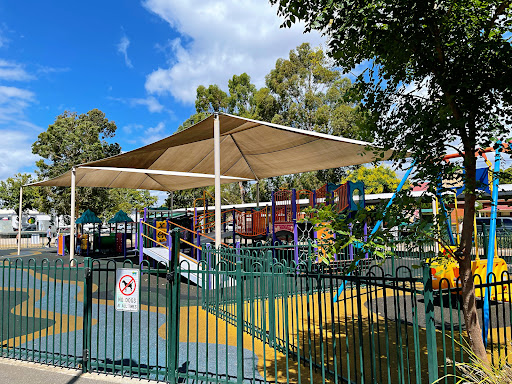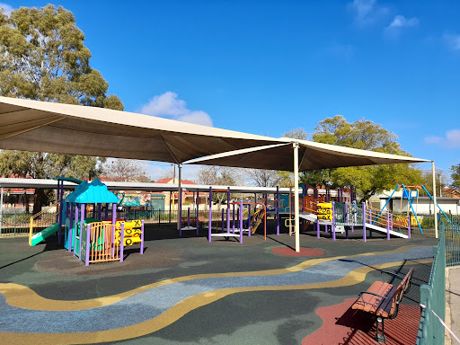 Ashley Street Playground, affectionately known as the ‘Purple Playground,’ is a fully fenced and well-equipped play area offering a safe and engaging experience for children. It features a good mix of activities, including slides, swings, and climbing structures, with a dedicated section for toddlers. The playground also boasts convenient amenities such as nearby public toilets, BBQ facilities, and adult exercise equipment, making it a complete package for a family outing. The unique purple theme and the view of planes flying overhead add to its appeal.