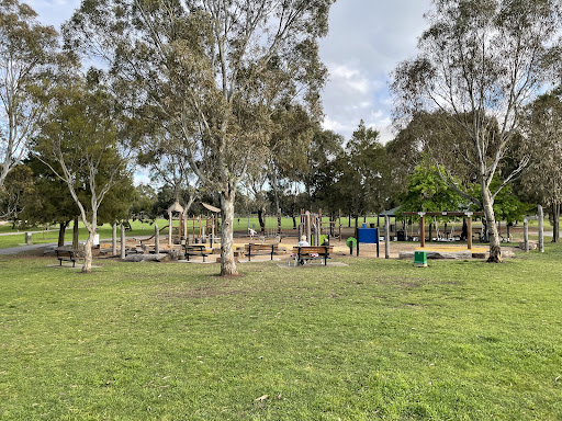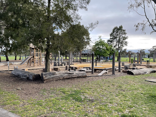 This playground features climbing ropes and equipment, along with balancing beams and swings, offering a good variety of play structures. It is positioned as one of two children’s play areas within Elsternwick Park.