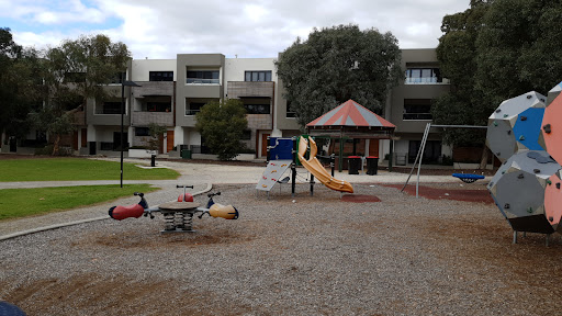 This playground offers a range of basic play equipment, including climbing structures, swings, and a slide, making it a functional spot for a quick play session. It’s also equipped with BBQ facilities and adjacent to a basketball court and open grass field, providing options for family activities and picnics. Its convenient location within a shopping center adds to its accessibility.
