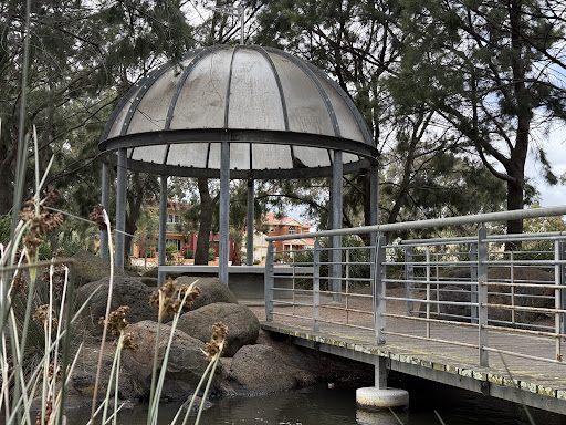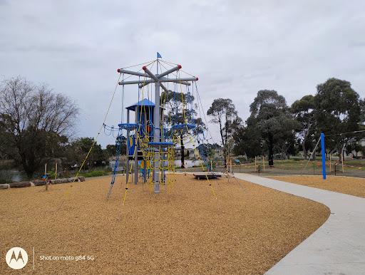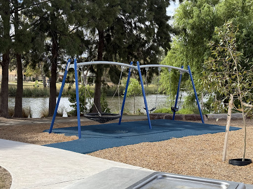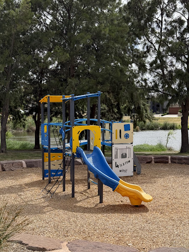 Lake Chamoun Playground is a revitalized park featuring superb new equipment in vibrant colors, set against a backdrop of creative landscaping around the lake. Highlights include an awesome net climb tower connected by a bridge to a tower with an enclosed slide, and a new flying fox. The park also offers BBQ facilities and picnic tables, making it a pleasant spot for families to enjoy outdoor activities and observe local birdlife.