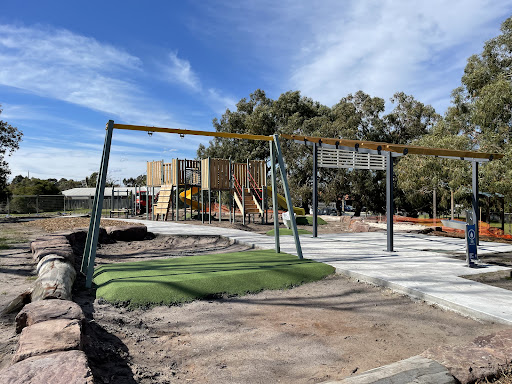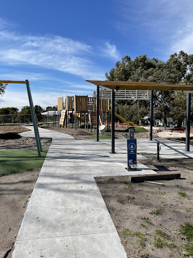 This is a nice new park nestled in a quiet neighborhood, offering a variety of activities for most ages. It features a sandpit, swings, and ample space for kicking a ball or enjoying a walk. Families can relax on the two park benches or at the picnic table under cover, with a convenient drink tap available.