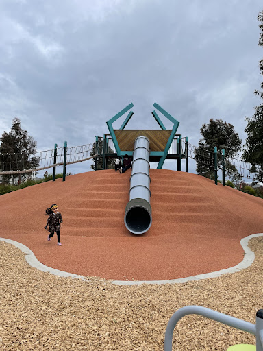 This awesome playground is a well-thought-out space that offers something for kids of all ages, featuring slides, climbing areas, a basketball half-court, and a spider swing. Surrounded by natural plants and offering beautiful views of a lake with wildlife, it also includes BBQ facilities, shaded cover, and plenty of benches and tables for family enjoyment. Grandchildren reportedly spend hours here every week.