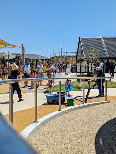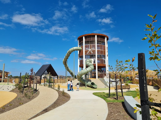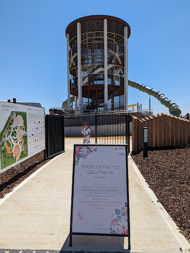 Silo Park Playground is an amazing, fully fenced, all-abilities playground that families will love. It features a striking replica Silo Tower with giant slides, inground trampolines, a large sandpit, and multiple swings. The park offers excellent amenities including toilets with changing facilities, BBQ areas with undercover picnic tables, and basketball courts, making it a perfect spot for family outings.