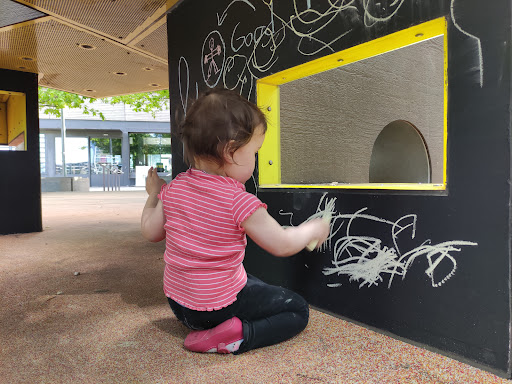 Buluk Park Playground is a delightful spot for families, offering natural shade from trees and an engaging water feature that kids love on sunny days. The playground includes climbing structures with ropes and a large metal slide, providing fun for younger children. Its location near the library and open grass areas makes it an ideal place for playdates and family outings.