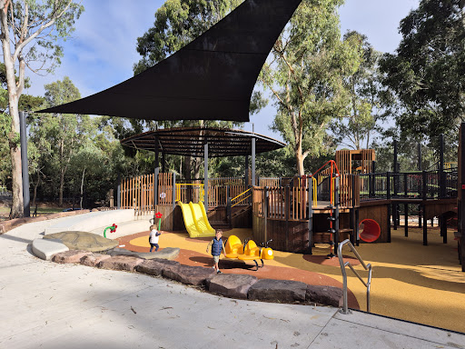 Hays Paddock Playground is a highly acclaimed, spacious, and fully fenced playground that offers an exceptional experience for children of all ages. It boasts an impressive variety of equipment, including numerous slides, swings, extensive climbing ropes, a large sandpit, and a water play area with a pump and lizard fountain. The playground also features artistic elements like animal sculptures and themed designs, a maze, tunnels, and an inclusive merry-go-round, making it a fantastic destination for family outings and celebrations.