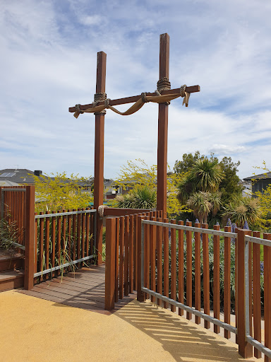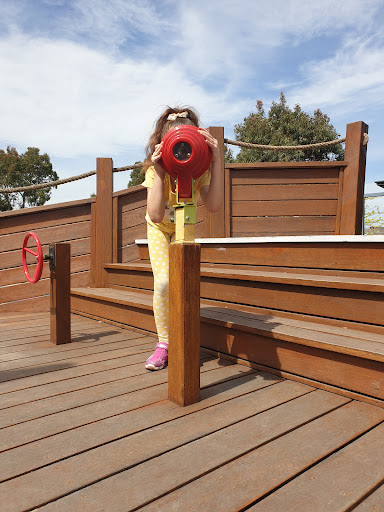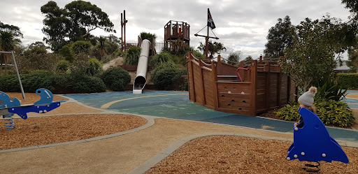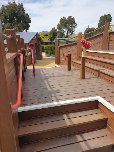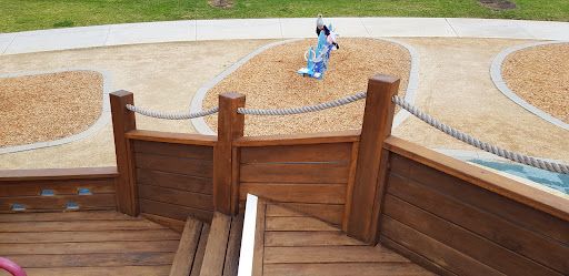This well-maintained playground features an engaging pirate theme with two pirate ships, a plank to walk, and a fast slide that thrill-seeking kids will love. It offers a variety of activities including swings, a seesaw, and climbing structures, making it suitable for younger children and encouraging imaginative play. Families can also take advantage of the clean toilet facilities, BBQ areas, picnic tables, and water refill stations, all set within a quiet neighborhood with plenty of open space.