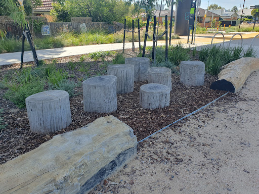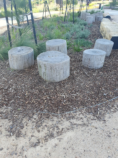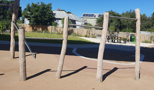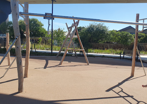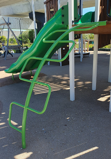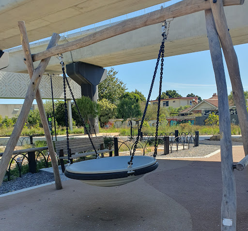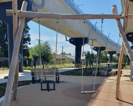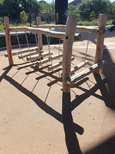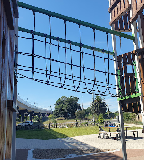 This medium-sized playground is a fantastic spot with a wide array of engaging play structures, including a large tunnel slide, two medium slides, monkey bars, a small flying fox, and musical elements. It features various climbing and swinging options like a rope bridge, small rock climbing wall, and a bird’s nest swing. The playground is situated under train bridges and offers amenities such as a drinking tap, BBQ facilities, picnic tables, and benches.