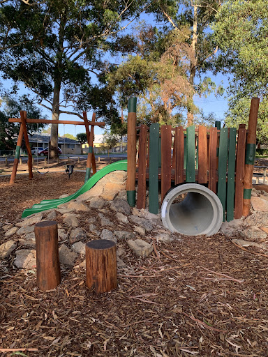 Mills Avenue Park has been beautifully renovated with a naturescape style, featuring charming timber logs and stumps that create a natural play environment. The park boasts brand new swings, including a secure baby swing, and is well-shaded by tall eucalyptus trees. It’s a pleasant, quiet spot with well-maintained grass areas, making it ideal for children and dogs to enjoy. Drinking fountains are available for convenience.